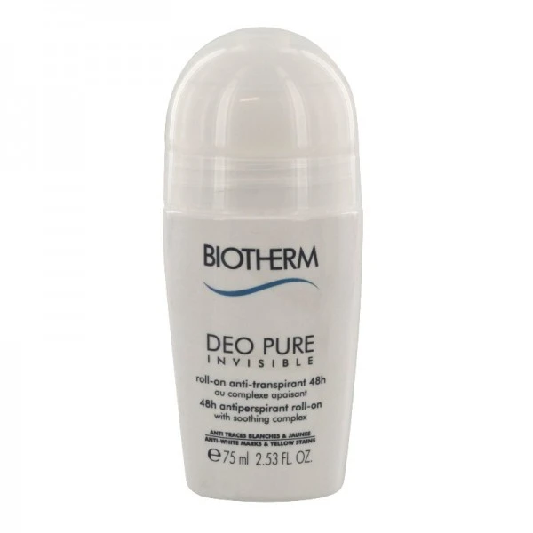 Biotherm Déo Pure Invisible Roll-On Anti-Transpirant 48h 75 ml au complexe apaisant est un déodorant anti-transpirant efficace pendant 48h. Il convient pour toutes les peaux, même les plus sensibles.