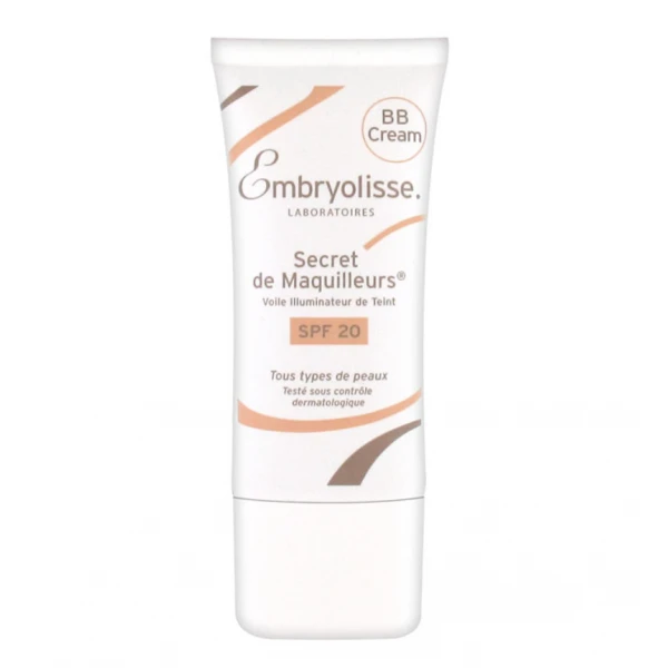 Embryolisse Secret De Maquilleurs Voile Illuminateur De Teint BB Cream SPF 20 30 ml est une vĂ©ritable BB Cream, qui illumine la peau en un geste. Embellisseur du teint, il floute pores et ridules, camoufle les imperfections avec ses poudres minĂ©rales matifiantes rĂ©flĂ©chissant la lumière et ses pigments camĂ©lĂ©on. Soin hydratant* puissant grâce Ă l’acide hyaluronique, il repulpe et lisse la peau. Soin protecteur anti radicaux libres et rayons UV, il prĂ©serve du vieillissement. Un effet nude bluffant : teint uni Ă©clatant, peau incroyablement veloutĂ©e. Une teinte universelle qui s’adapte parfaitement Ă la plupart des carnations.