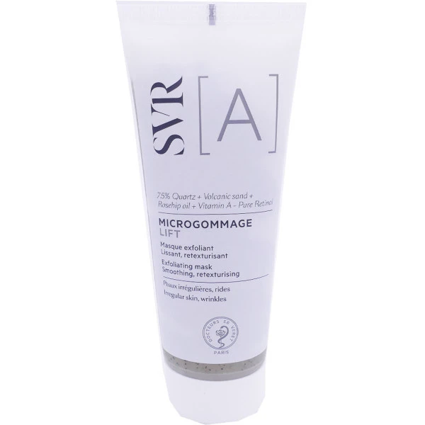 Pour cibler à la fois l’accumulation des cellules mortes et les signes de l’âges, le Laboratoire SVR a développé une formule inédite : Le Microgommage Lift enrichi en Vitamine A, un masque exfoliant en 3 steps pour 3 actions anti-âge :