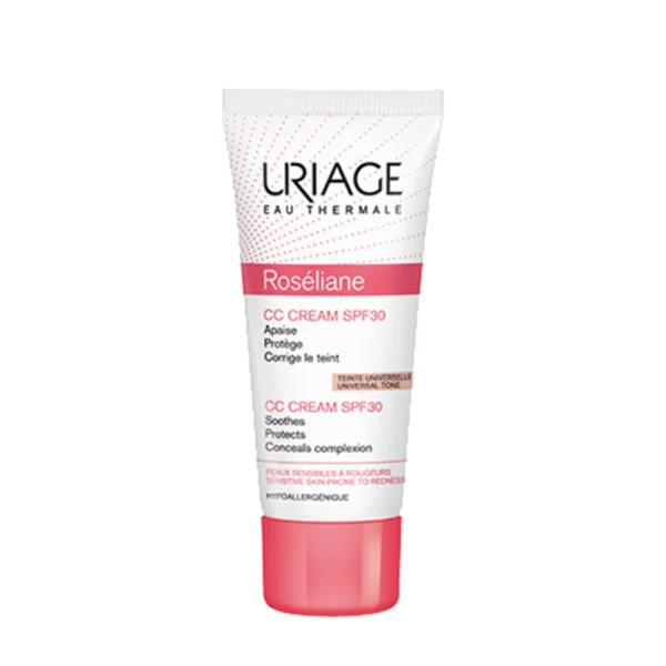 Uriage Roséliane CC Cream SPF 30 40 ml à la texture onctueuse et non grasse est un soin tout-en-un dédié aux peaux sensibles, sujettes aux rougeurs.